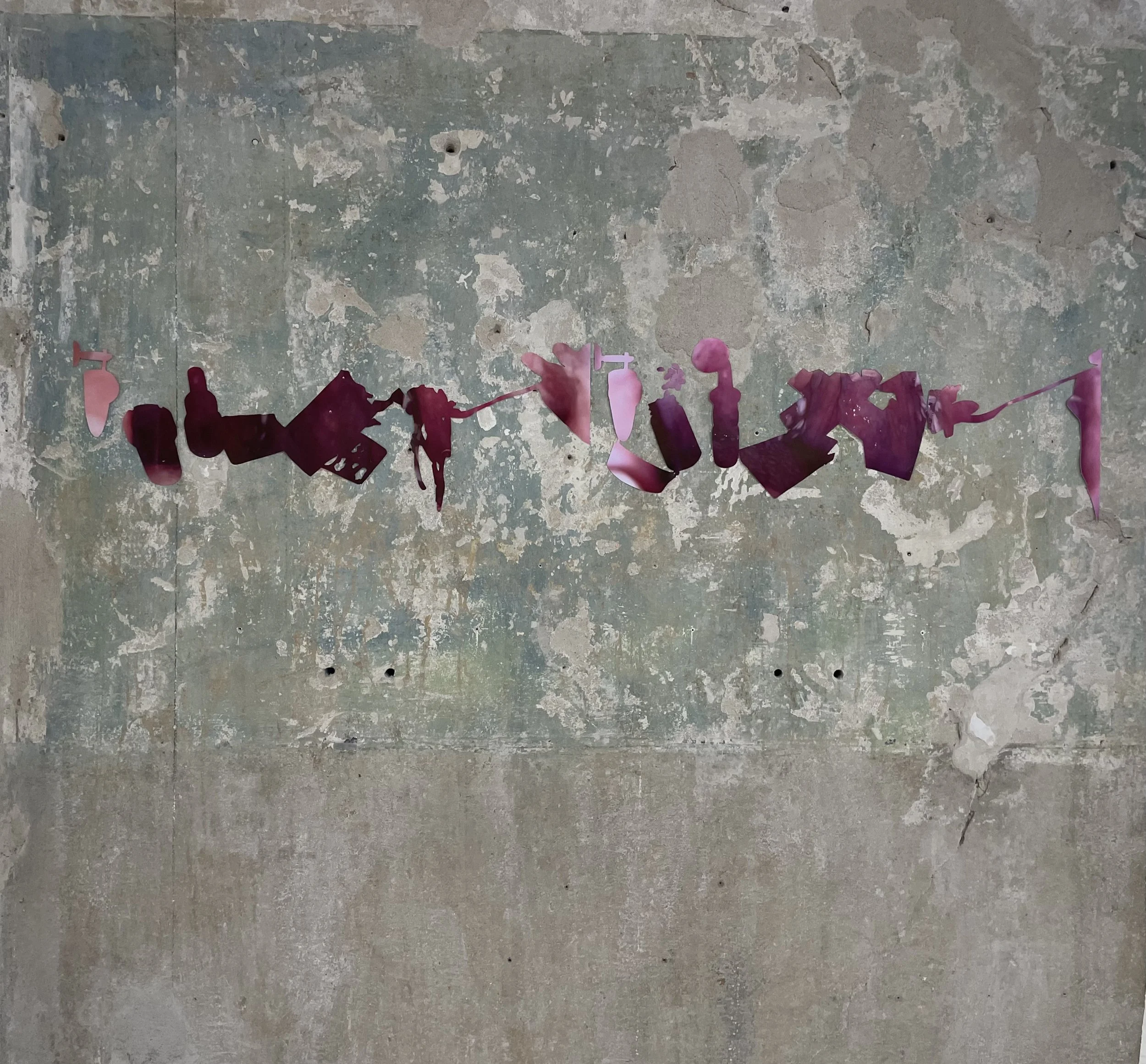 Repeat Tonsillitis (2025) is about the misfortune of repetition. Silhouettes of the medicine and everyday objects I relied on during my back to back bouts of infection are overlaid with an enlarged pictures of the back of my throat, as glossy photographic prints. 8 x 48cm.